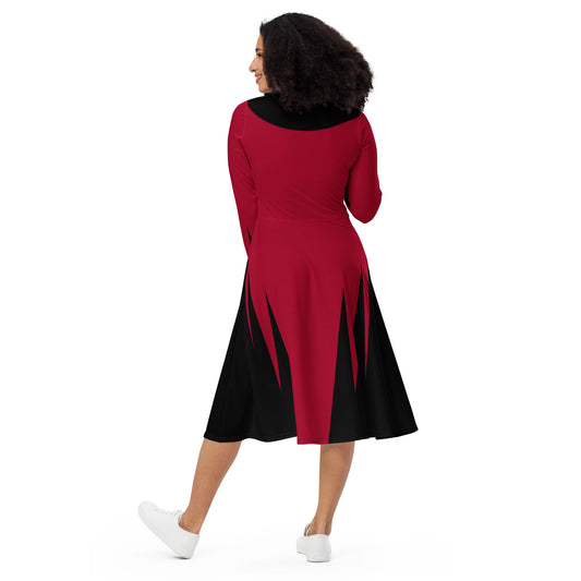 Queen of Hearts Costume Long Sleeve Midi Dress