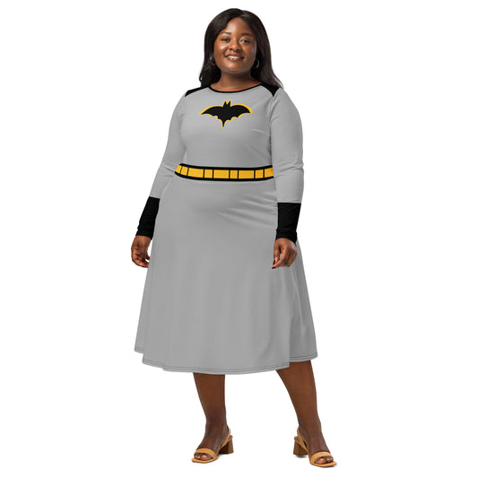 Batman Grey and Black Costume Long Sleeve Midi Dress