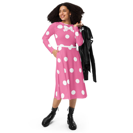 Minnie Mouse Costume Long Sleeve Midi Dress