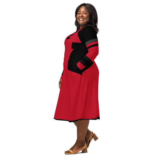 Deadpool Costume Long Sleeve Midi Dress
