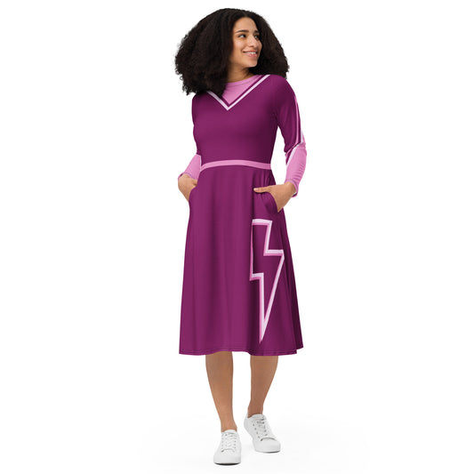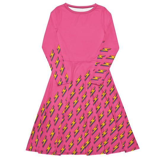 Intergalactic Lightning Bolt (Pink) Long Sleeve Midi Dress