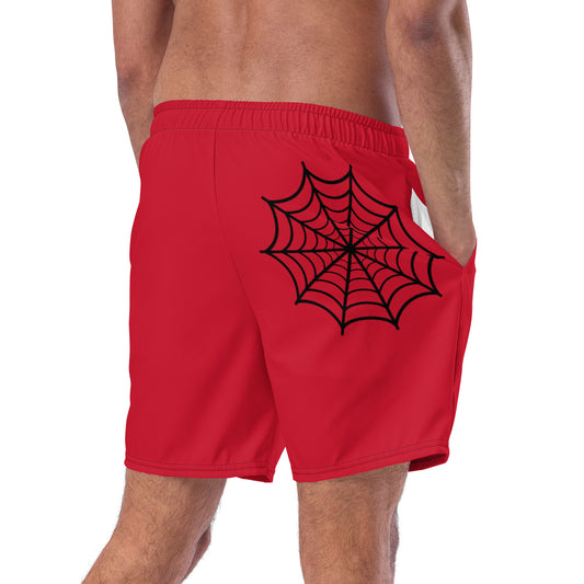 Dangling Spider + Web (Red) Swim Trunks
