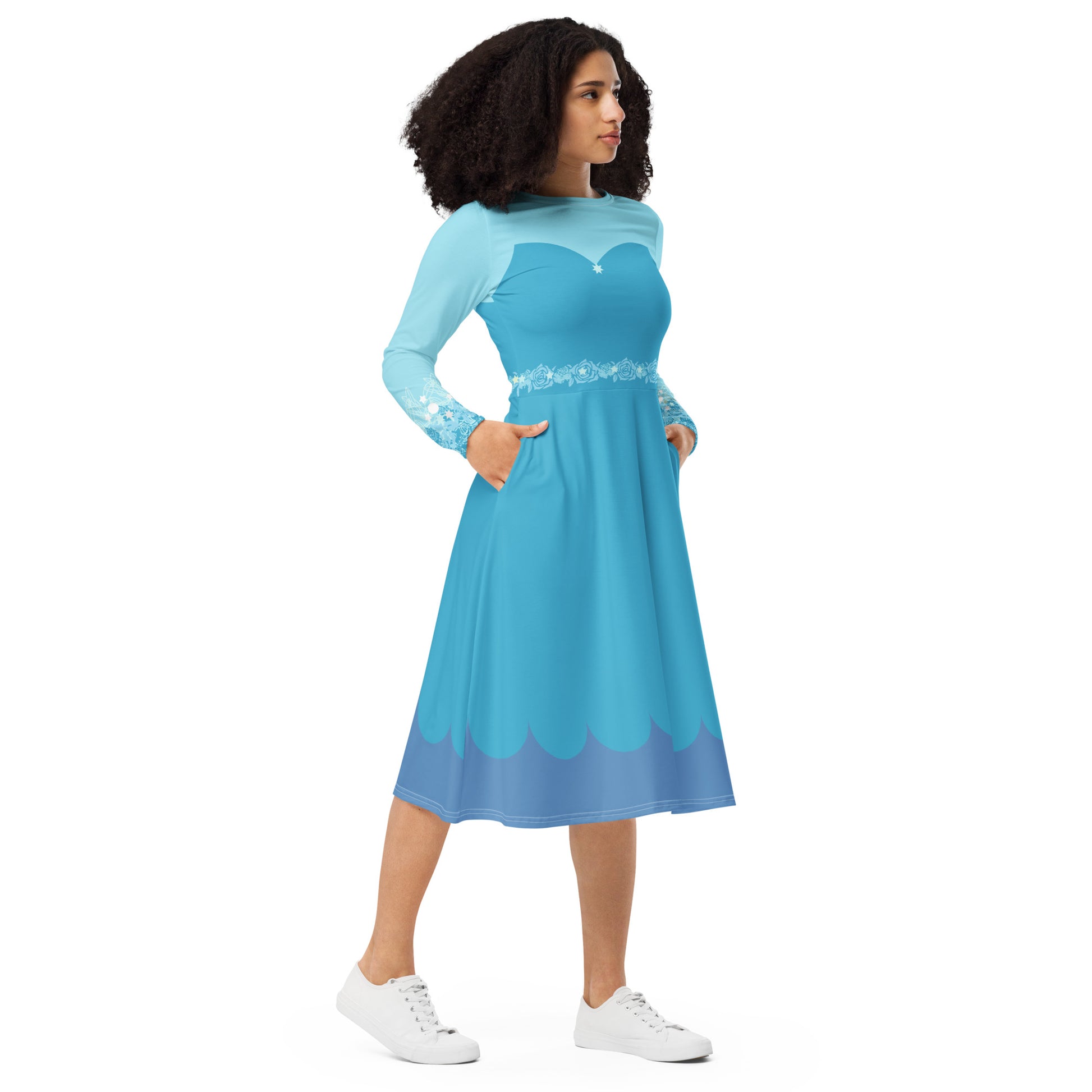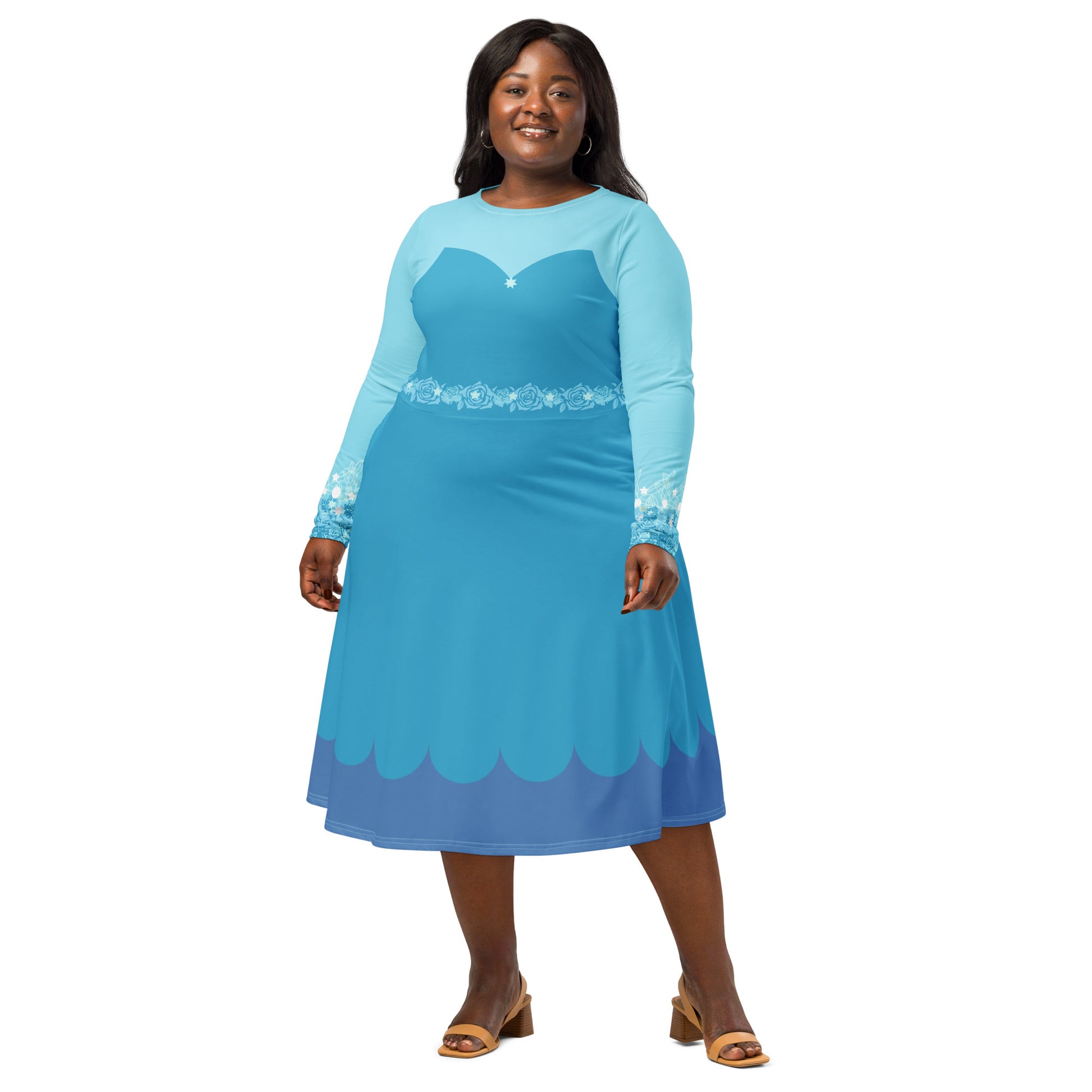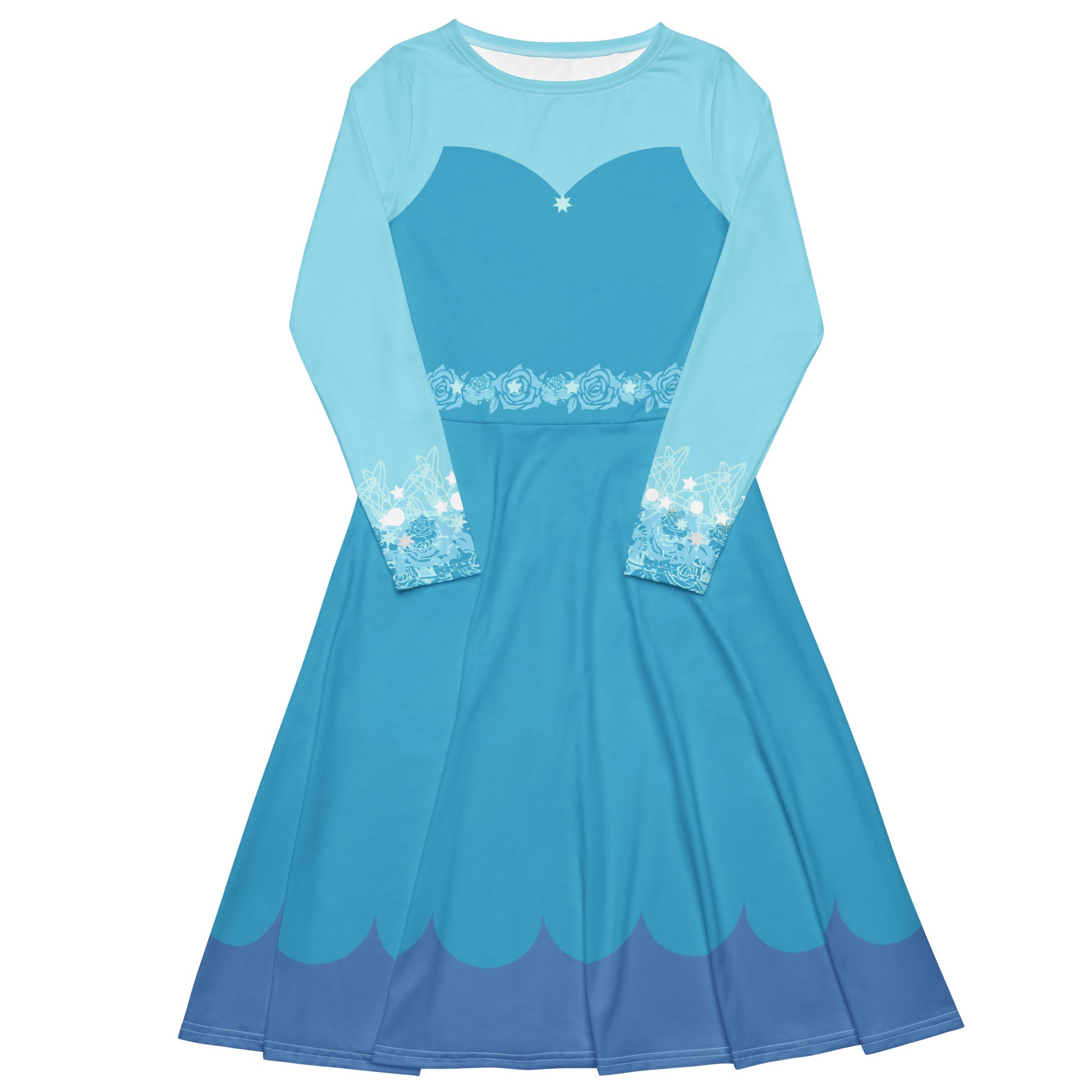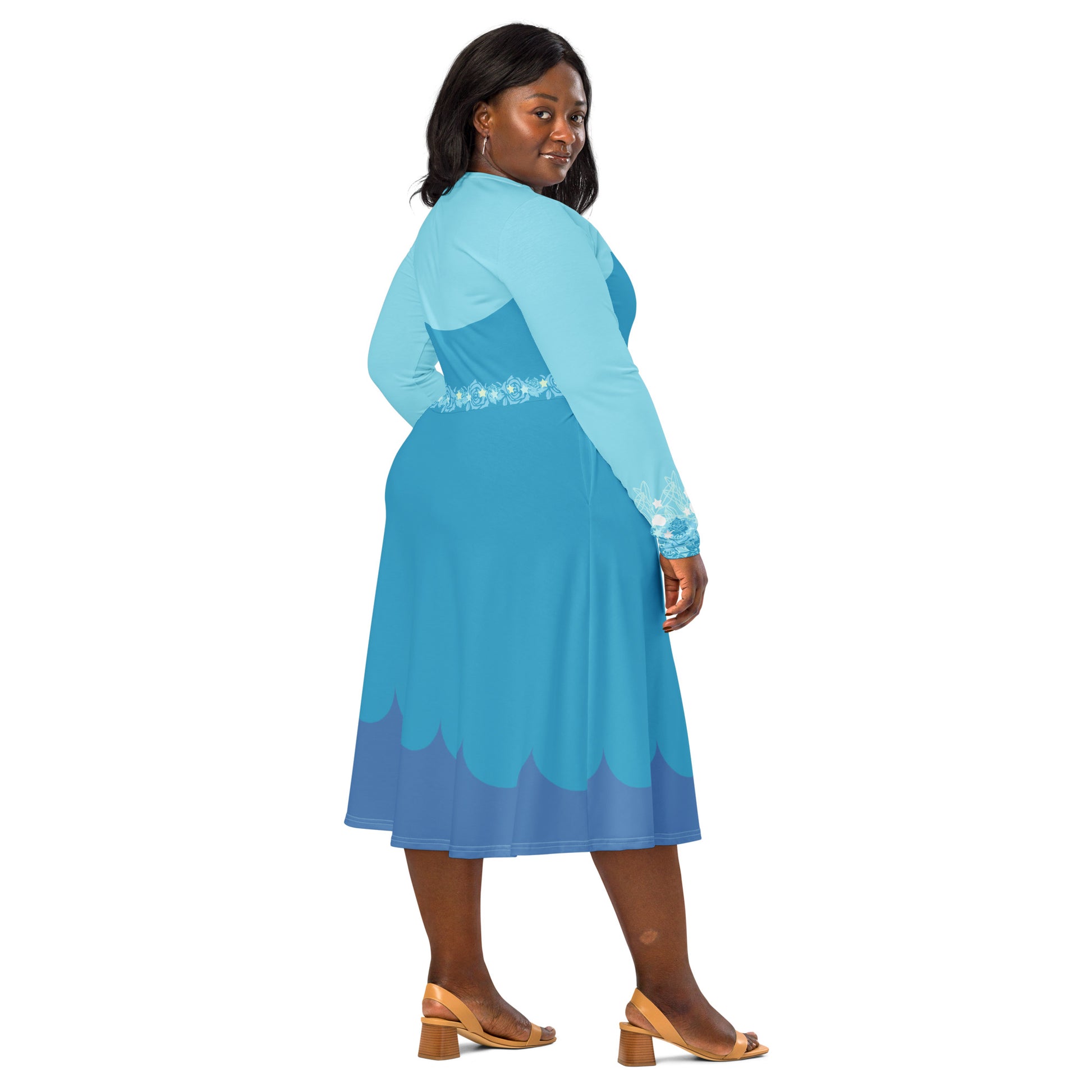 Blue Fairy Costume Long Sleeve Midi Dress
