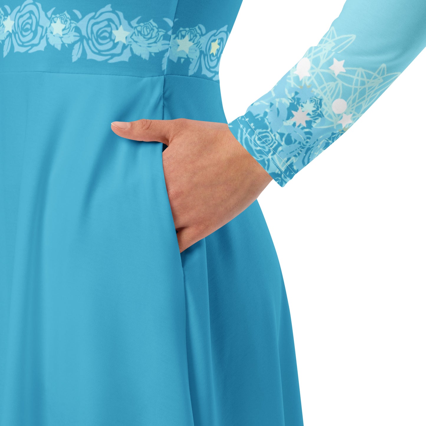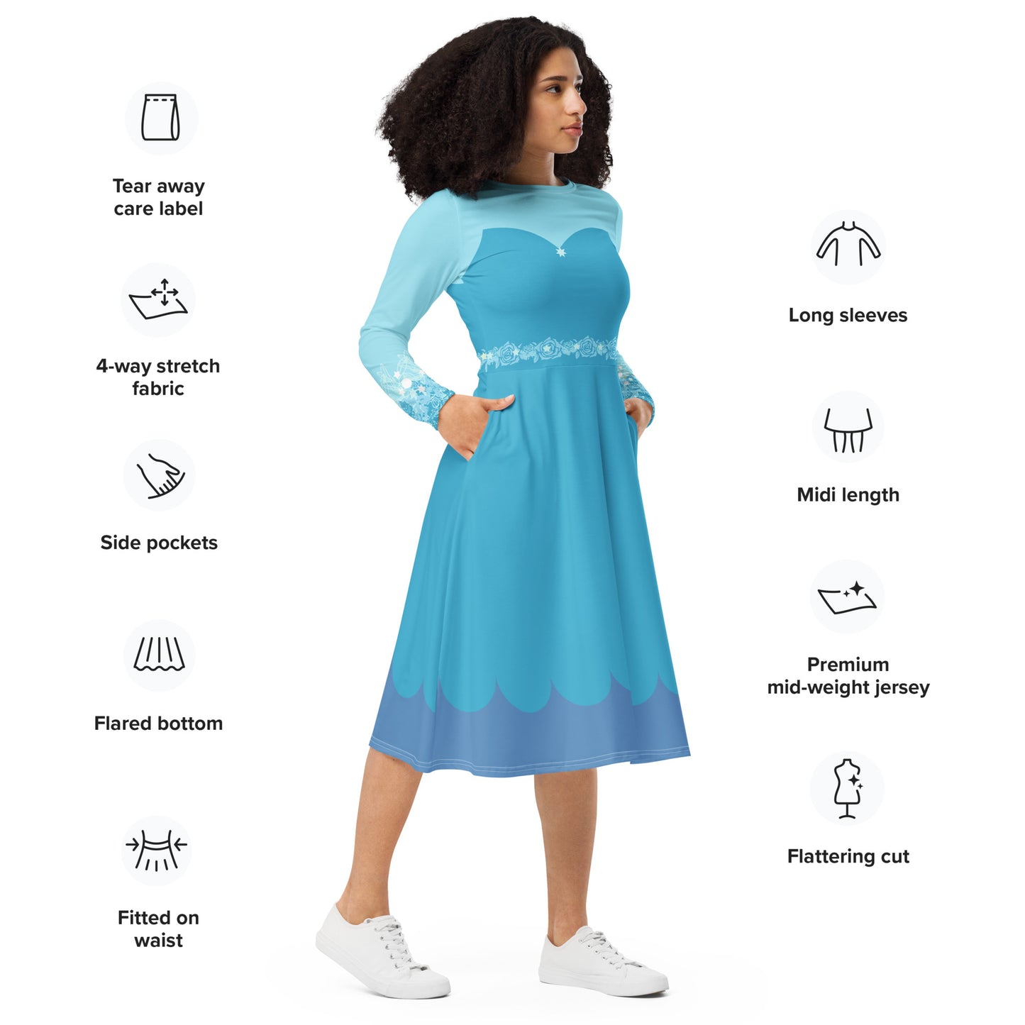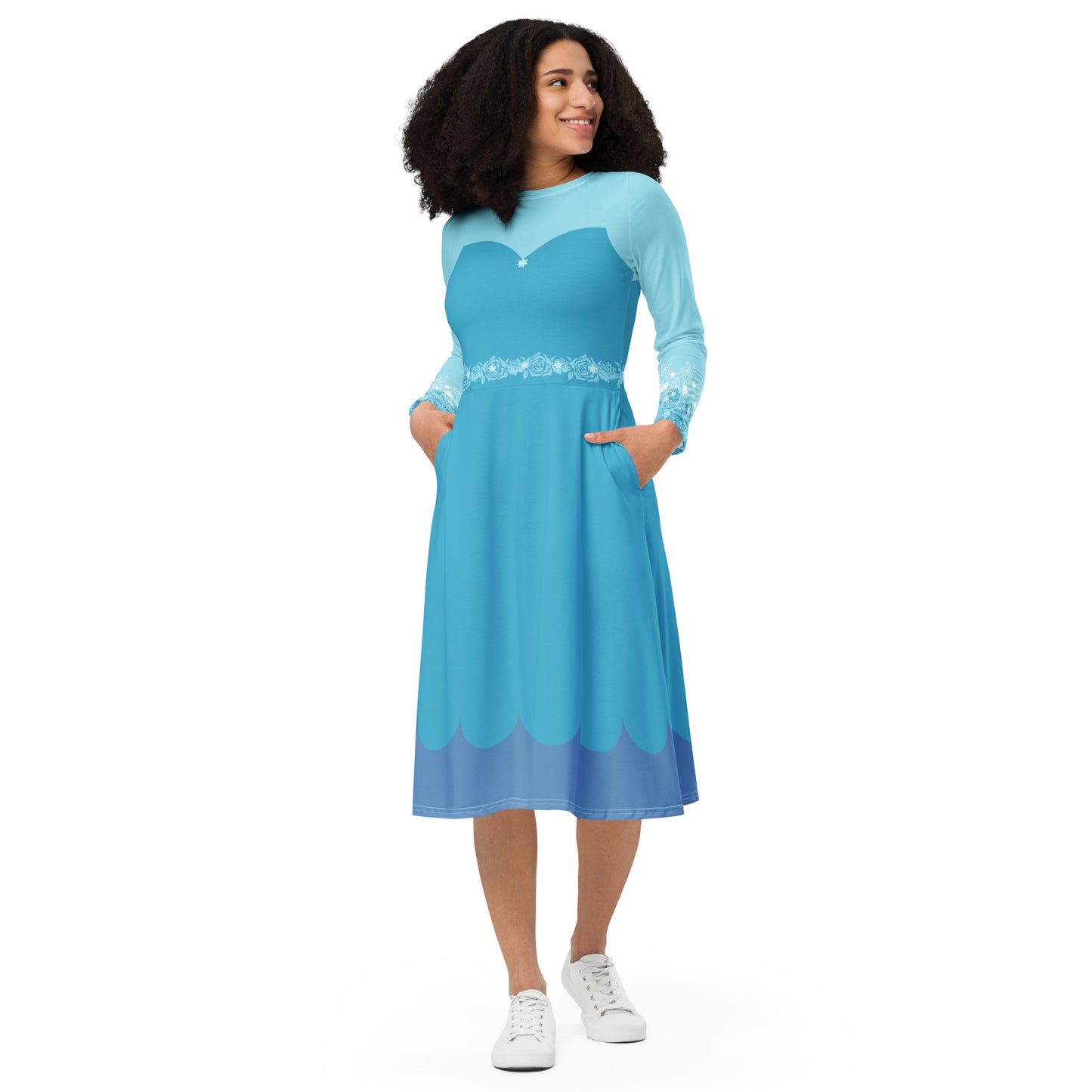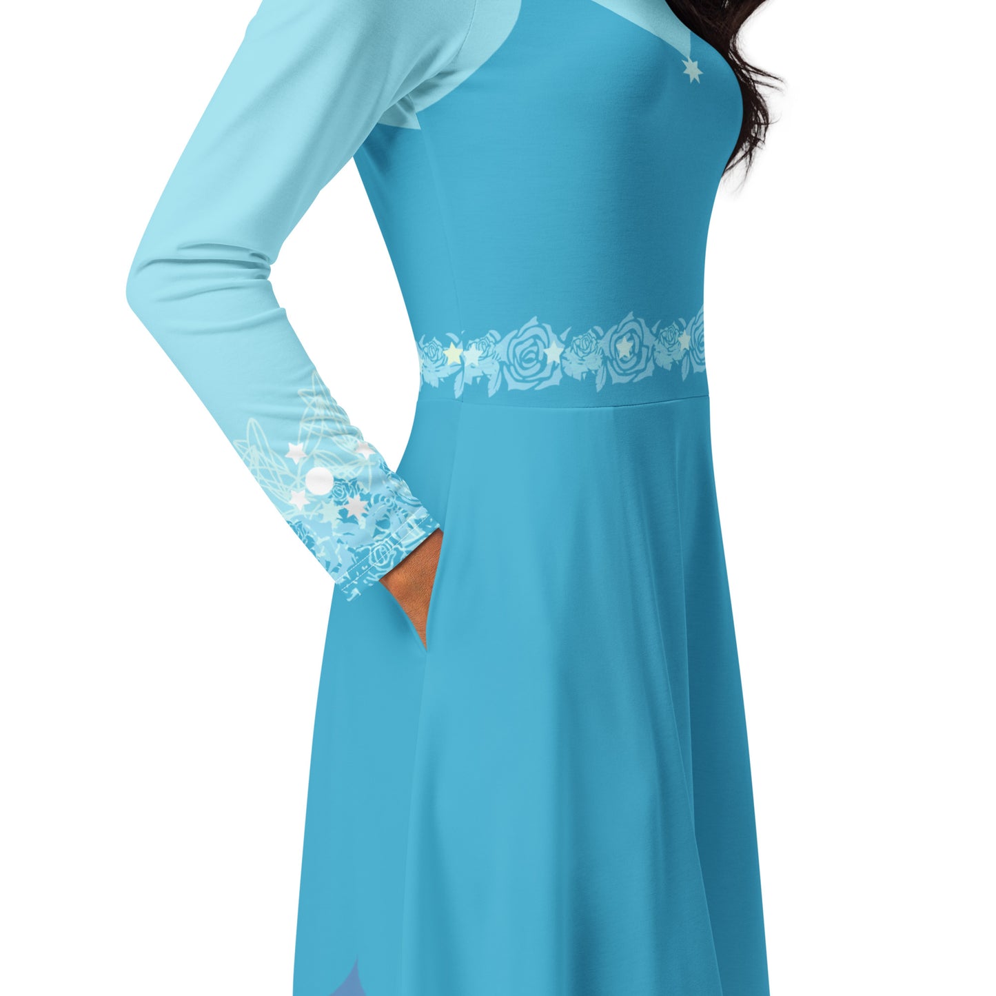 Blue Fairy Costume Long Sleeve Midi Dress