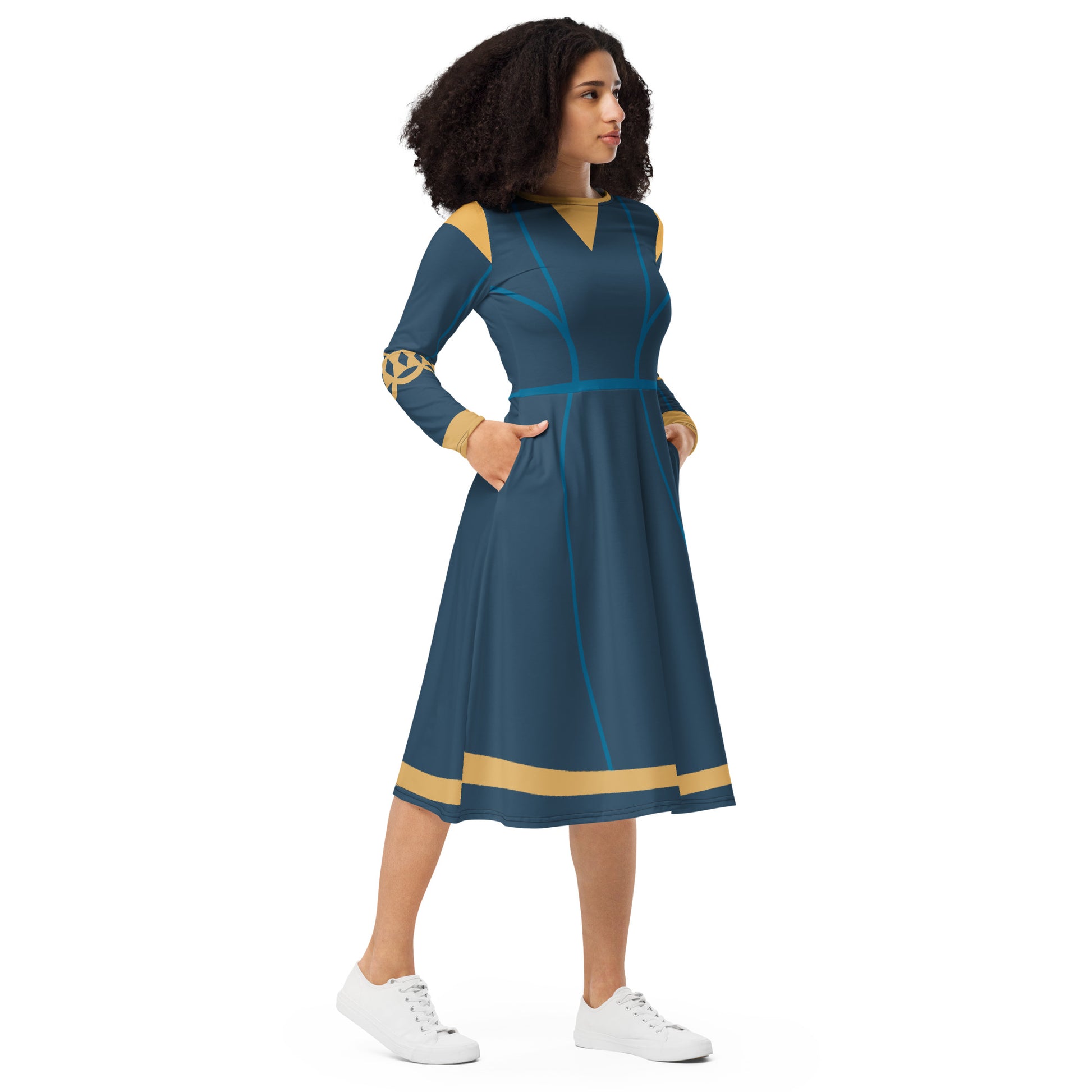 Brave Superhero Princess Costume (Blue) Long Sleeve Midi Dress