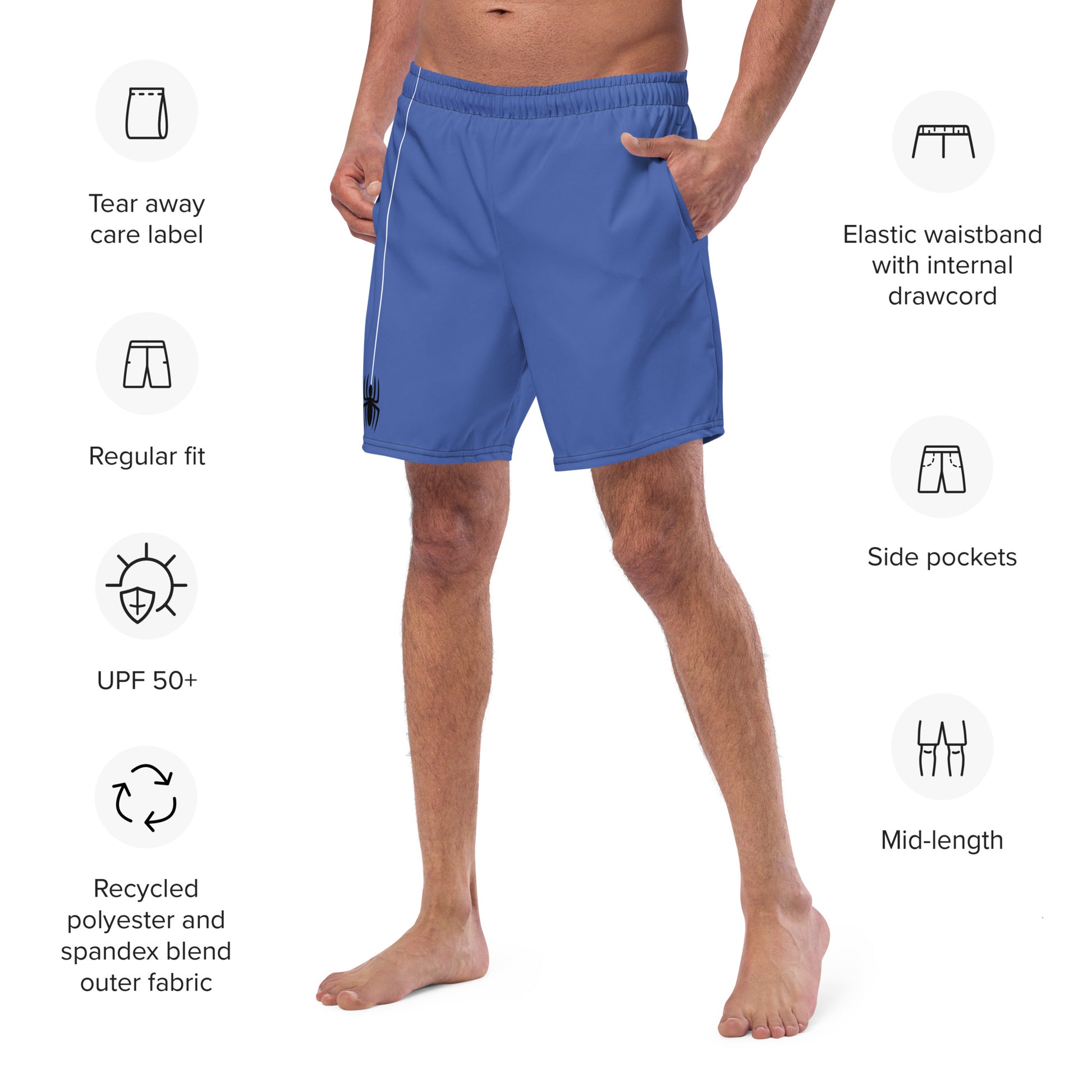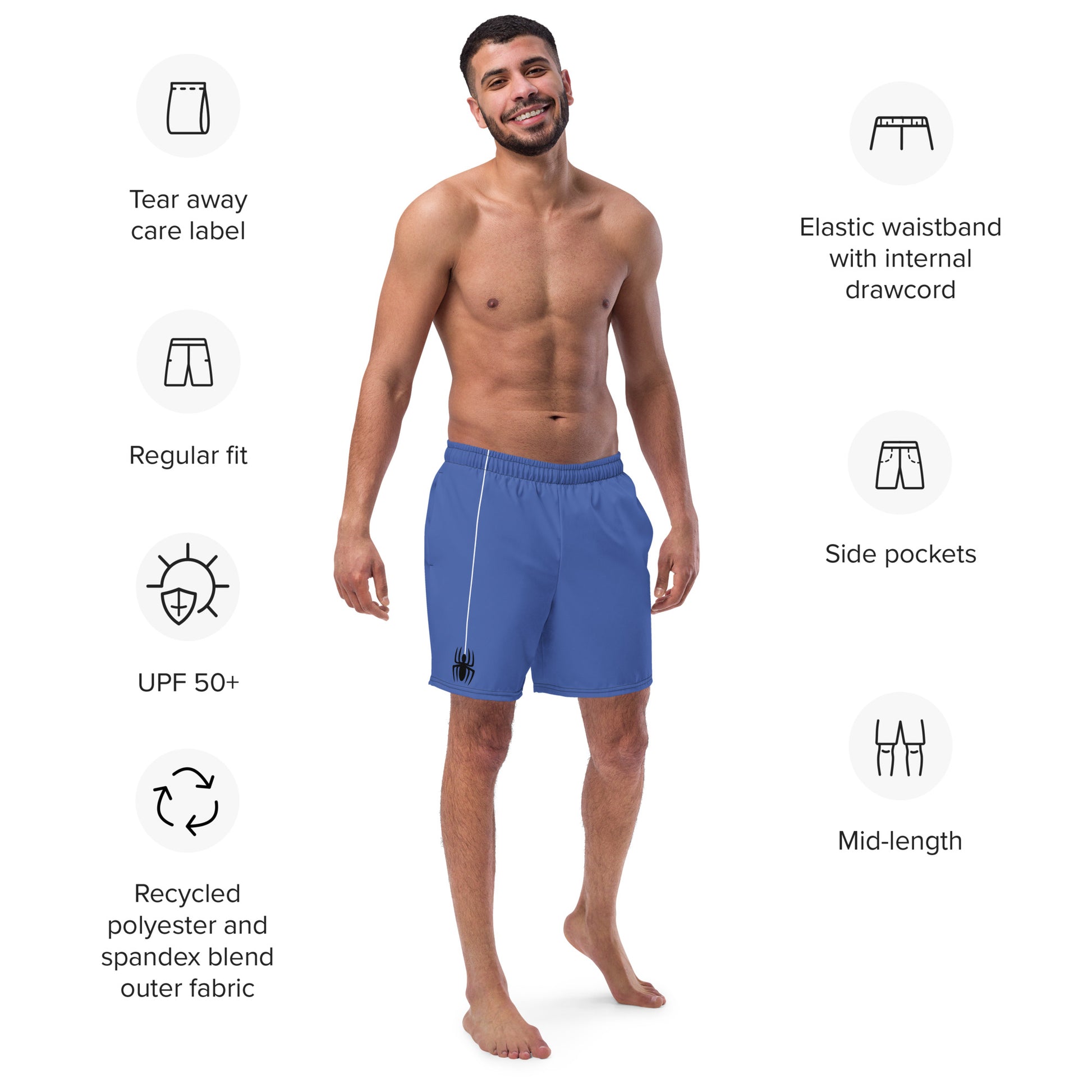 Dangling Spider + Web (Blue) Swim Trunks