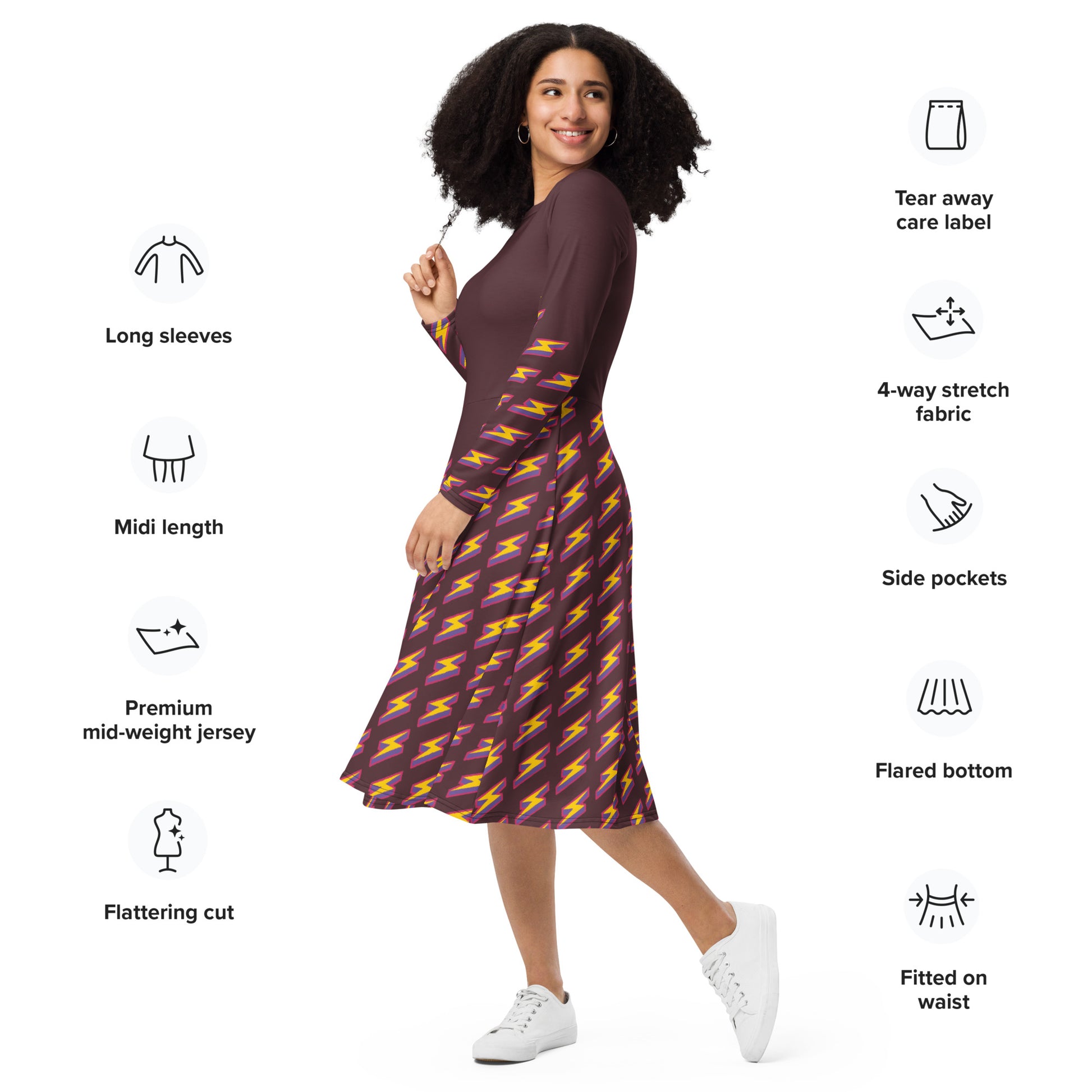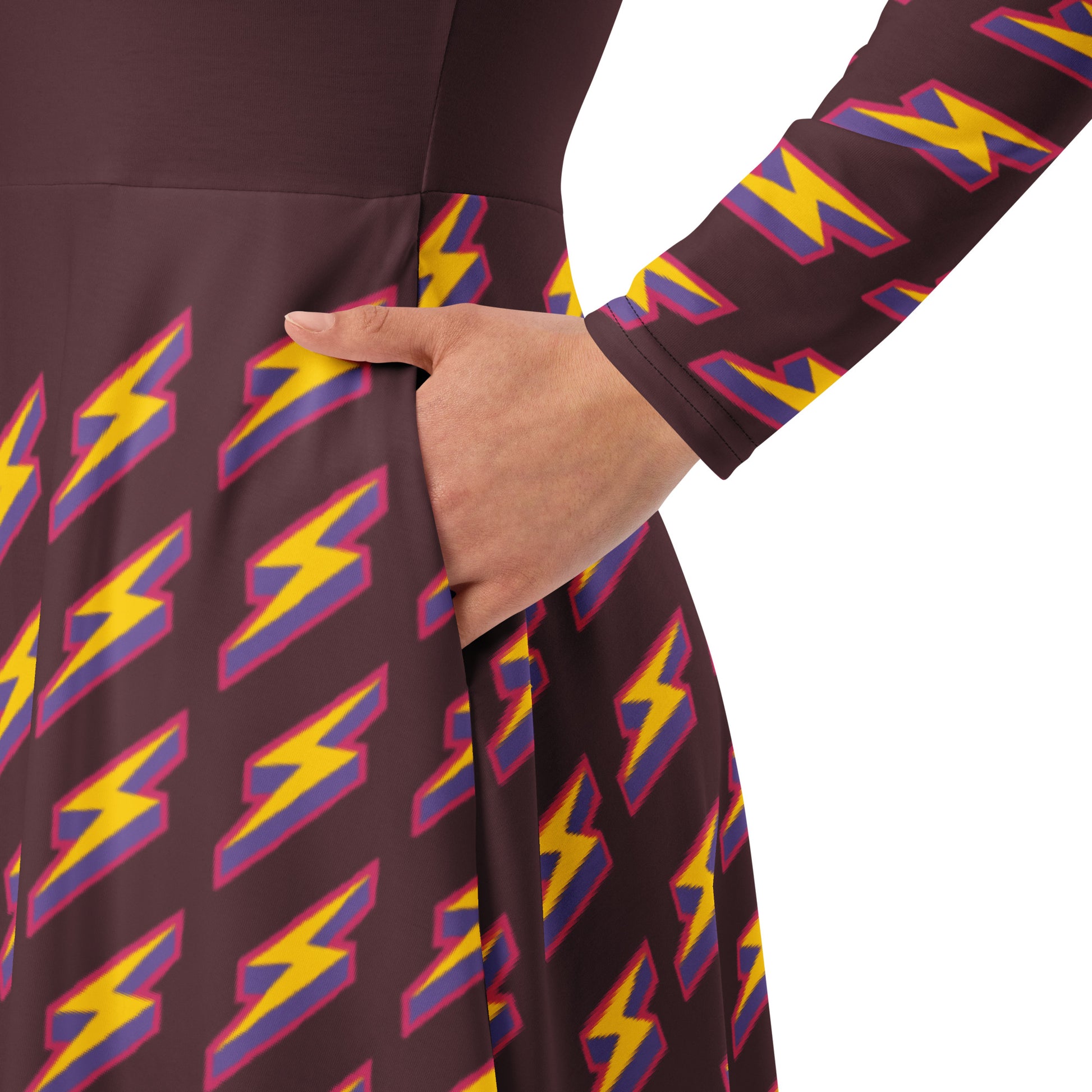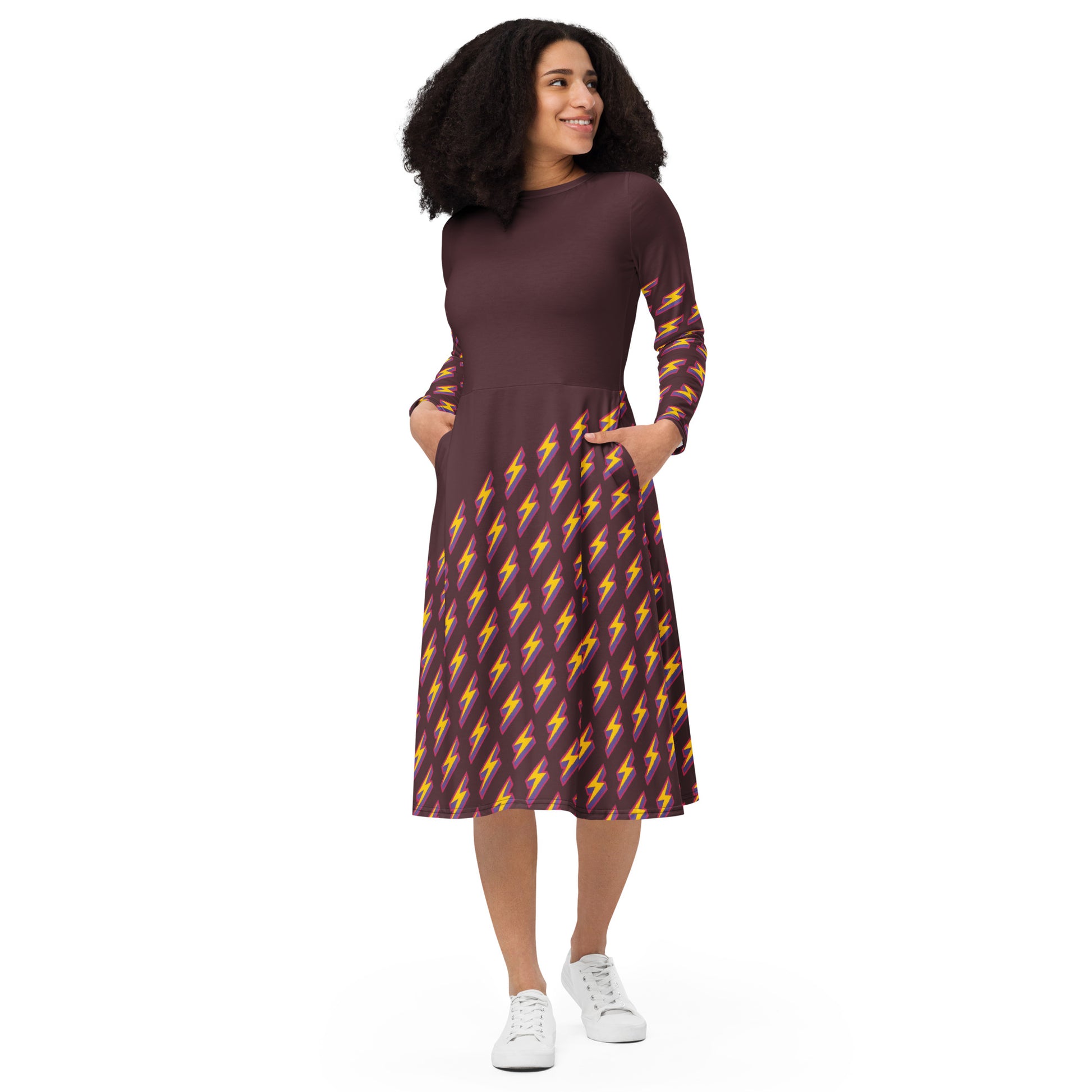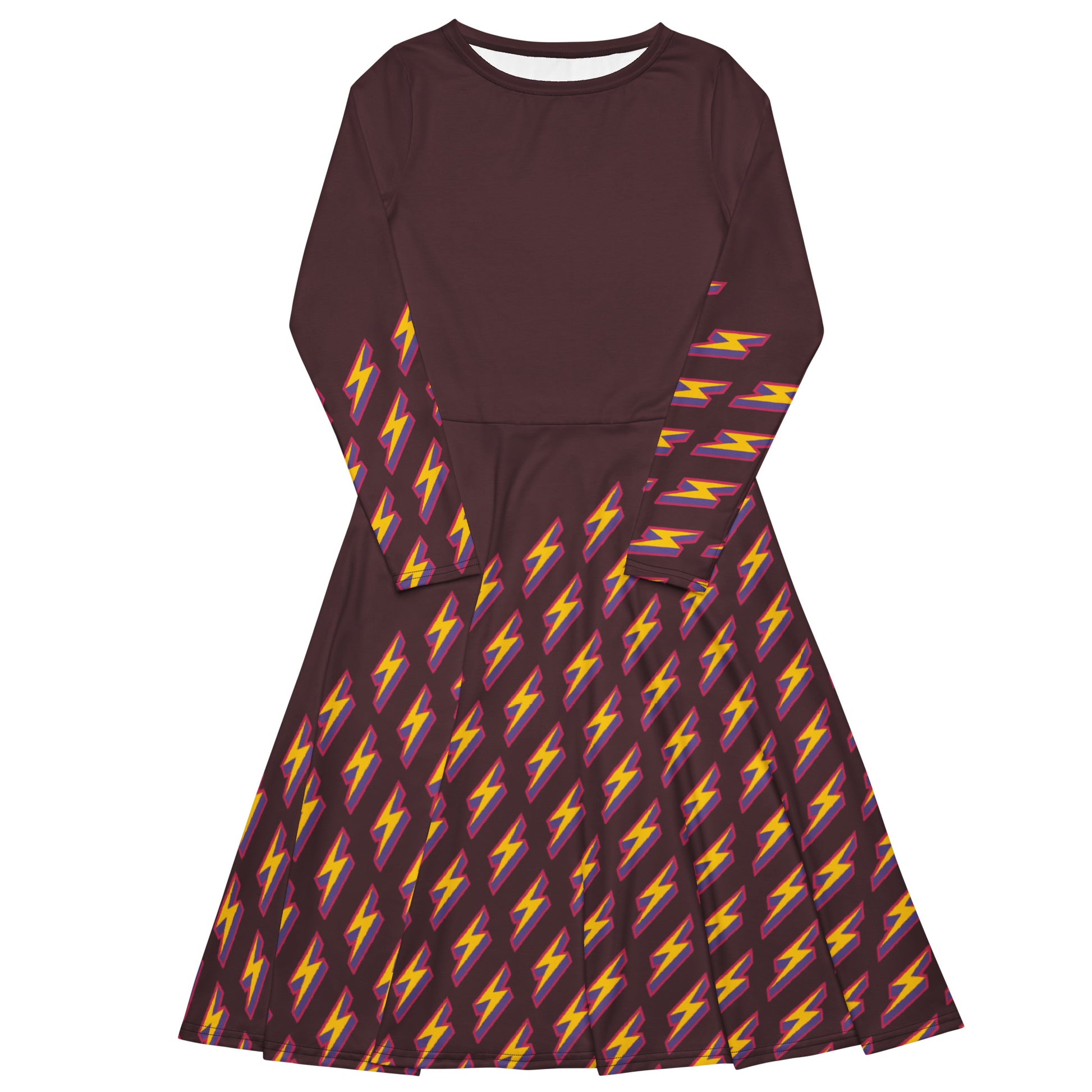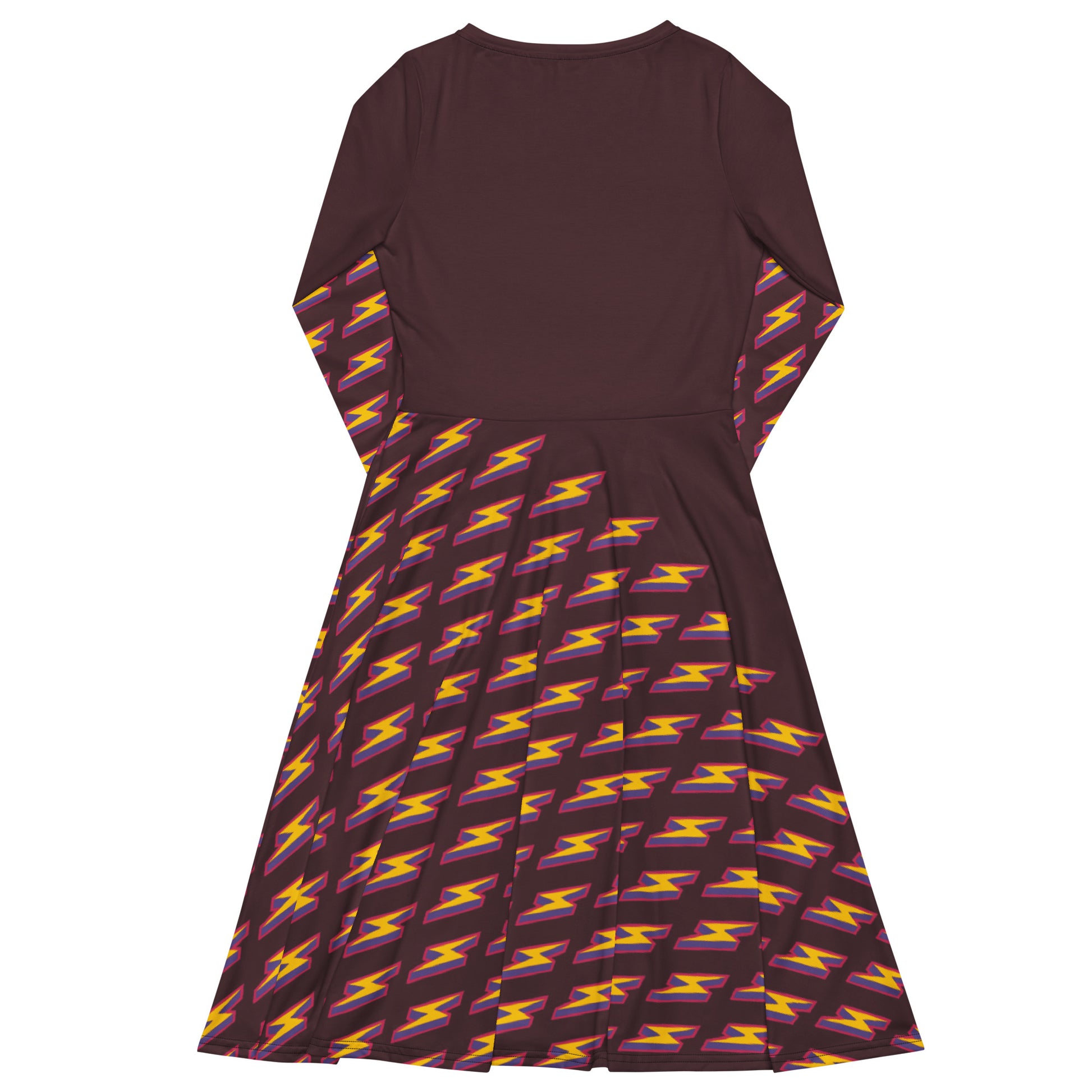 Intergalactic Lightning Bolt (Burgundy) Long Sleeve Midi Dress