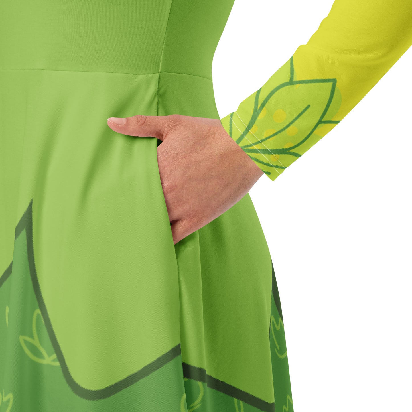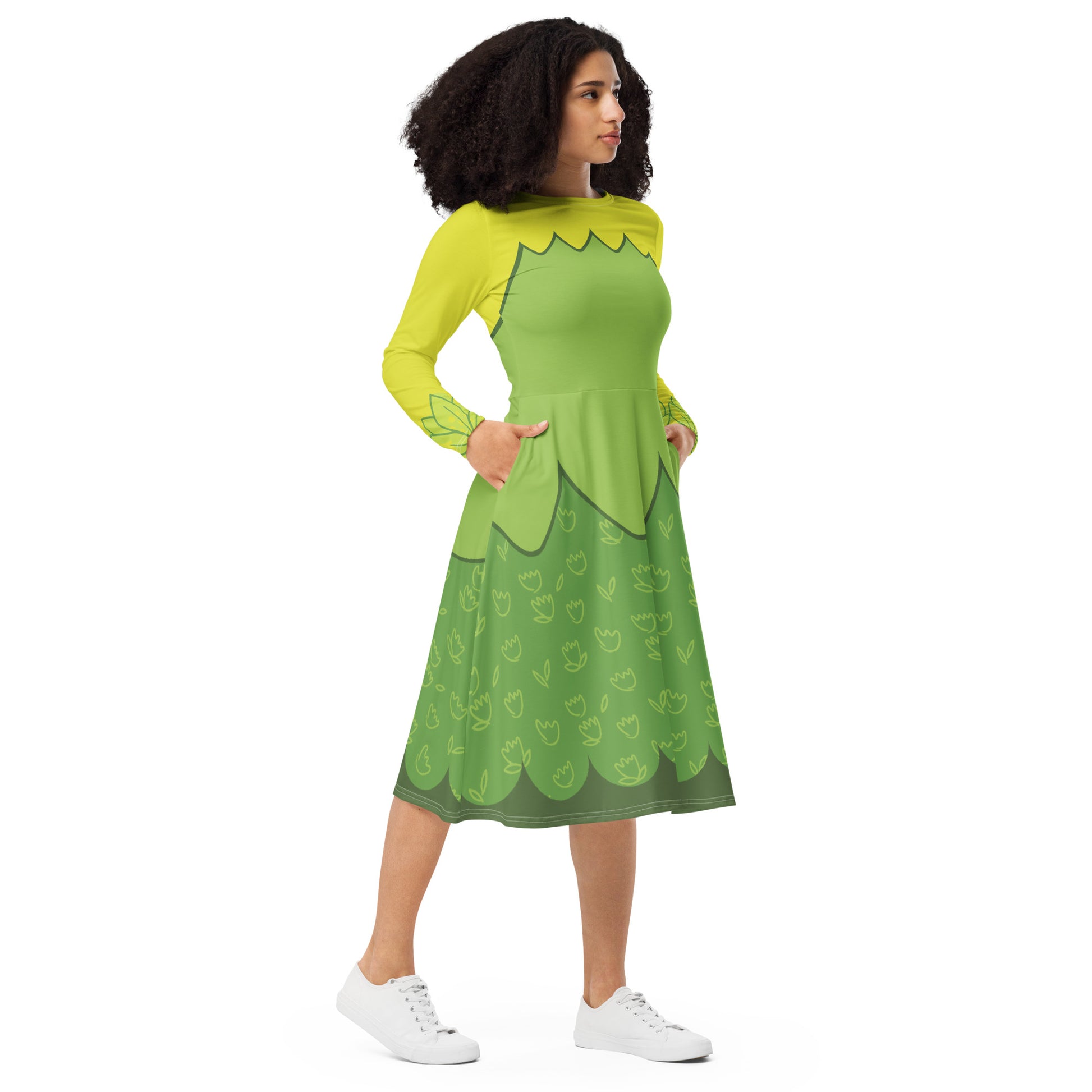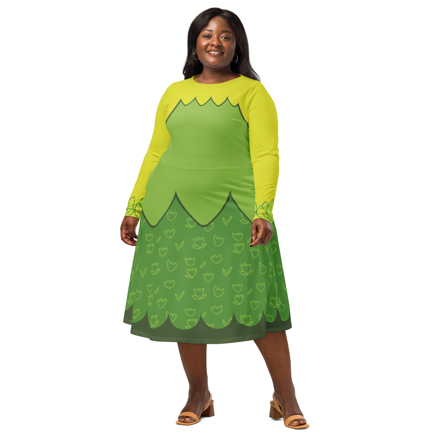 Tiana Frog Princess Costume Long Sleeve Midi Dress