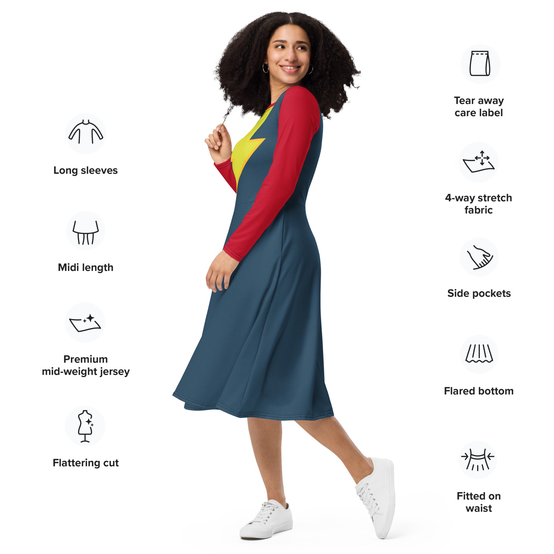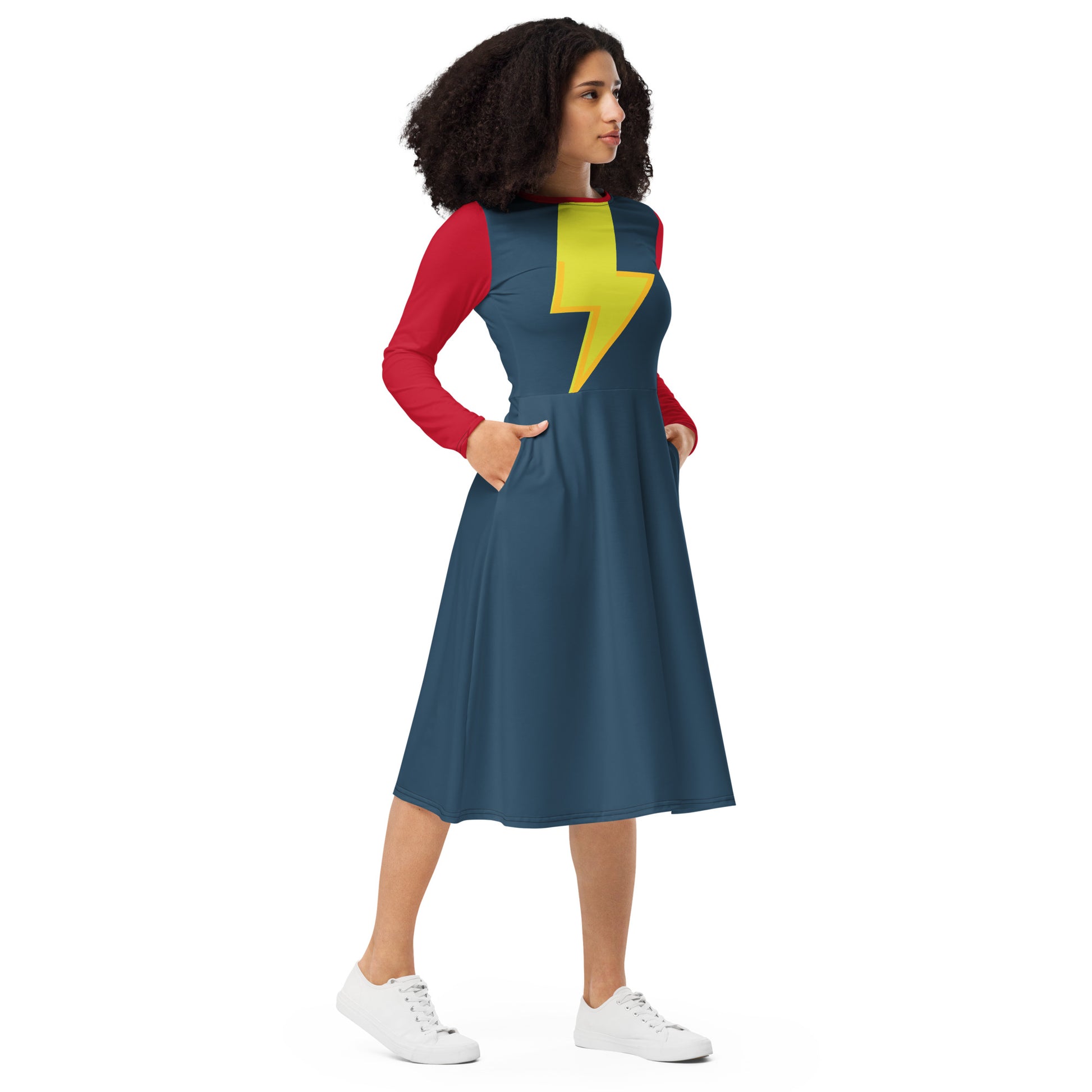 Ms. Kamala Khan Long Sleeve Midi Dress