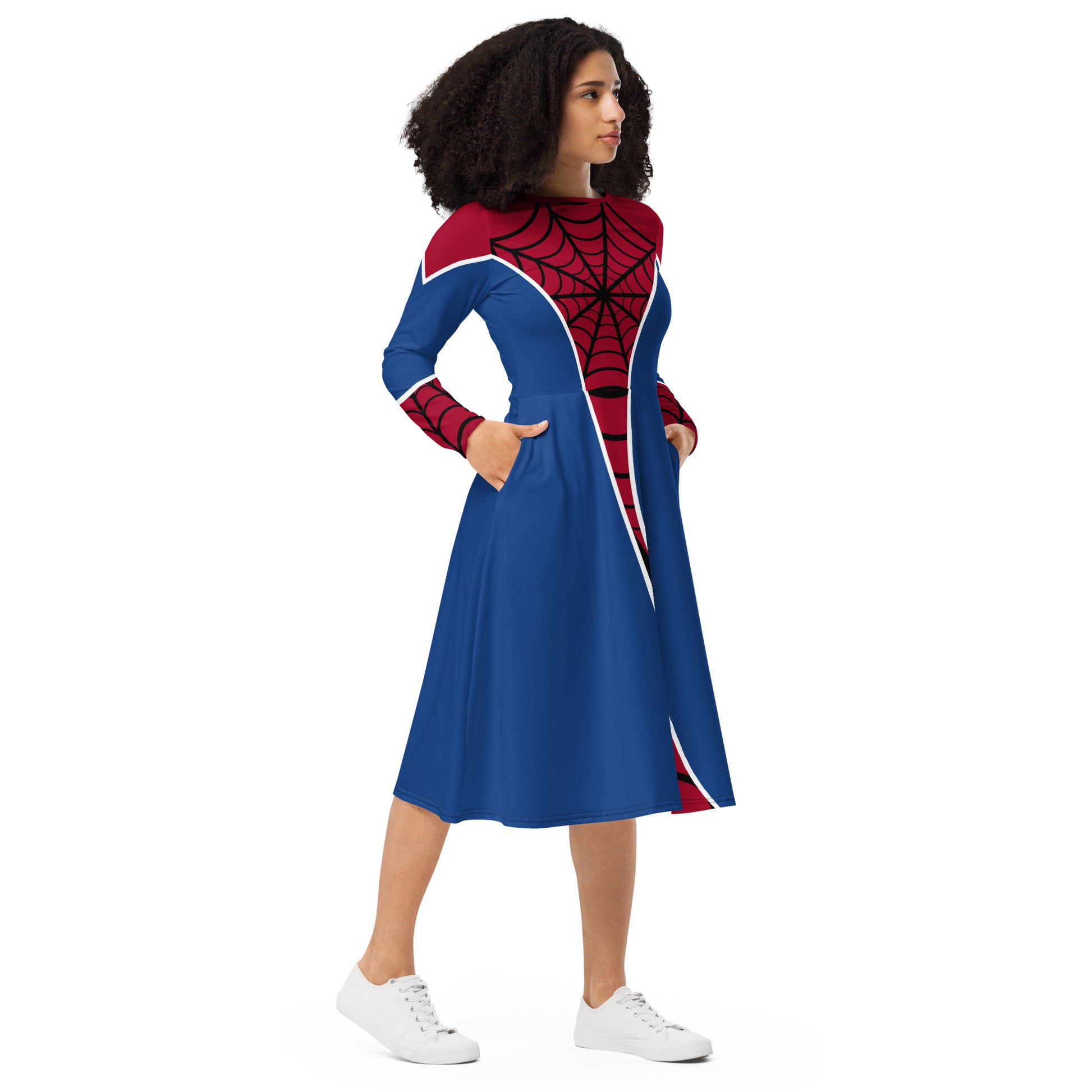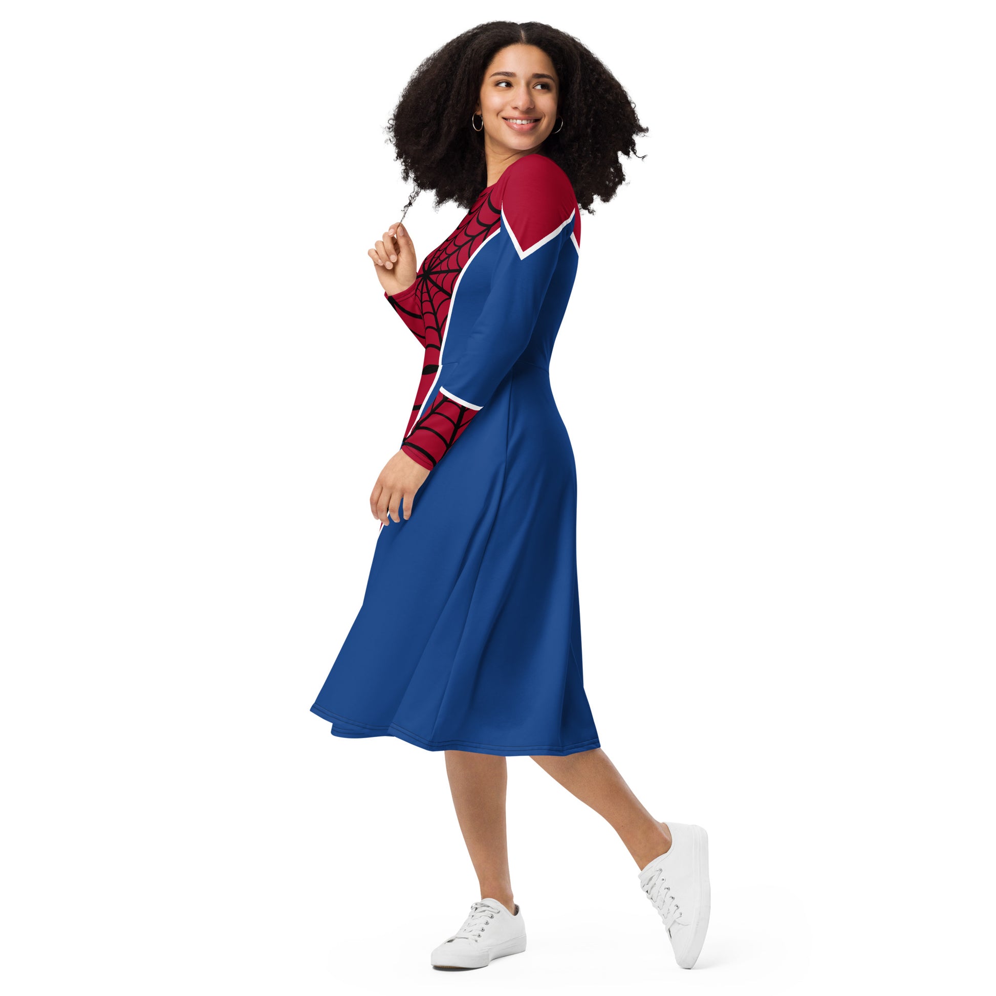 Spider-Man Costume Long Sleeve Midi Dress