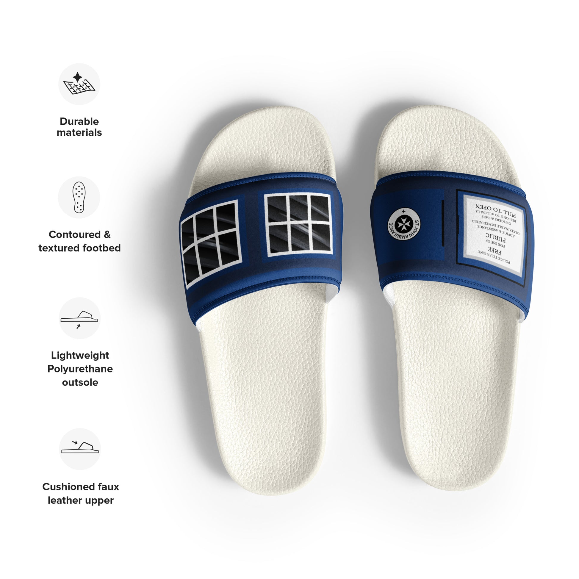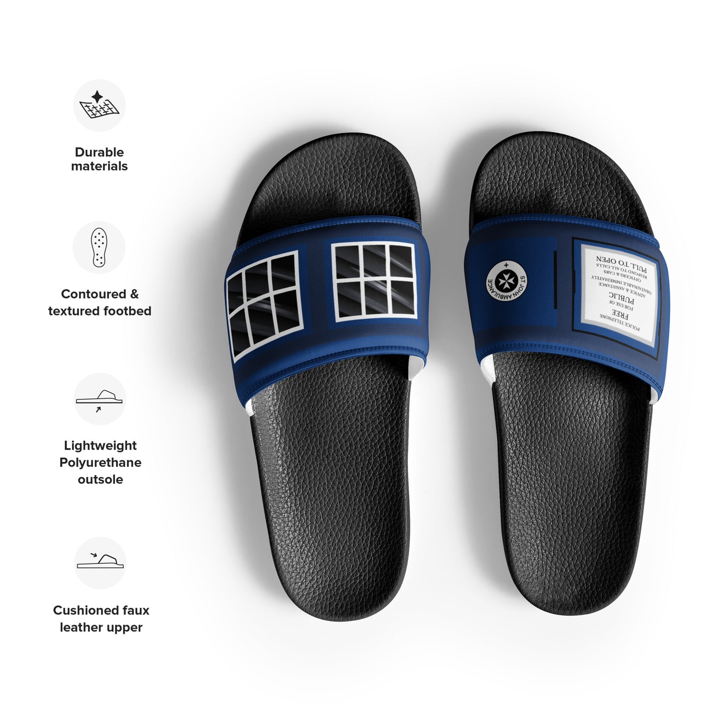 • Cushioned faux leather upper strap
